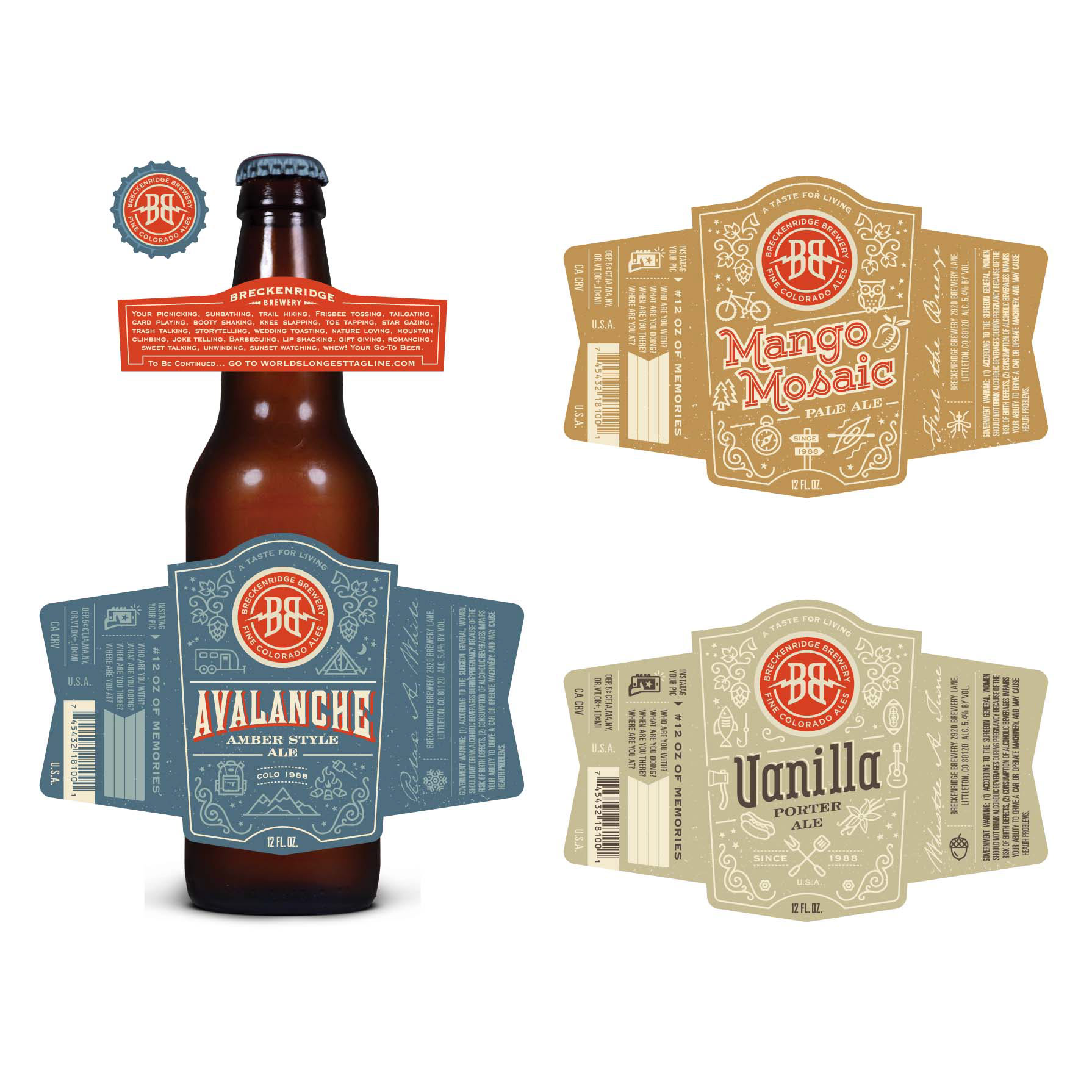 I designed a set of 3 beer labels, 6 pack holders and interactive coasters for Breckenridge Brewery…