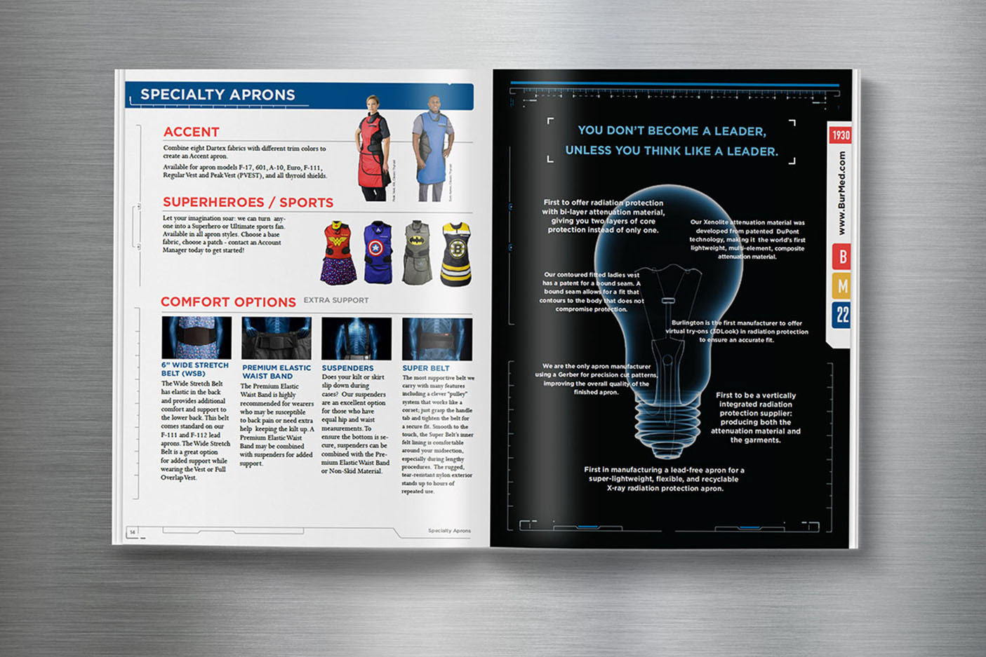 Proud to share a few spreads from the new Burlington Medical catalog design, spotlighting their industry-leading X-ray aprons, eyewear, and protective gear. Focusing on clean layouts, fun conceptual apron photography, and a modern visual system that communicates precision, trust, and innovation. Always a pleasure designing for brands that protect those who protect others.